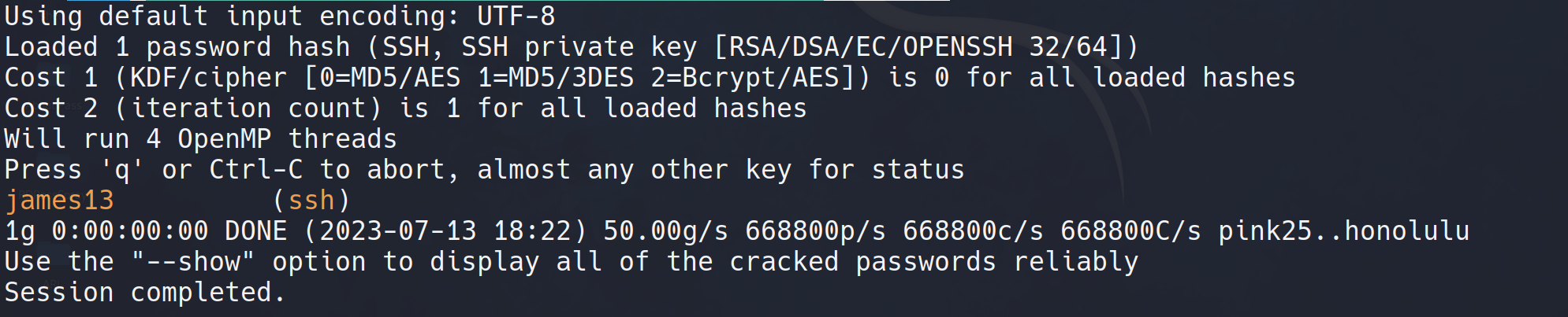 john --wordlist=/usr/share/wordlists/rockyou.txt key.txt
