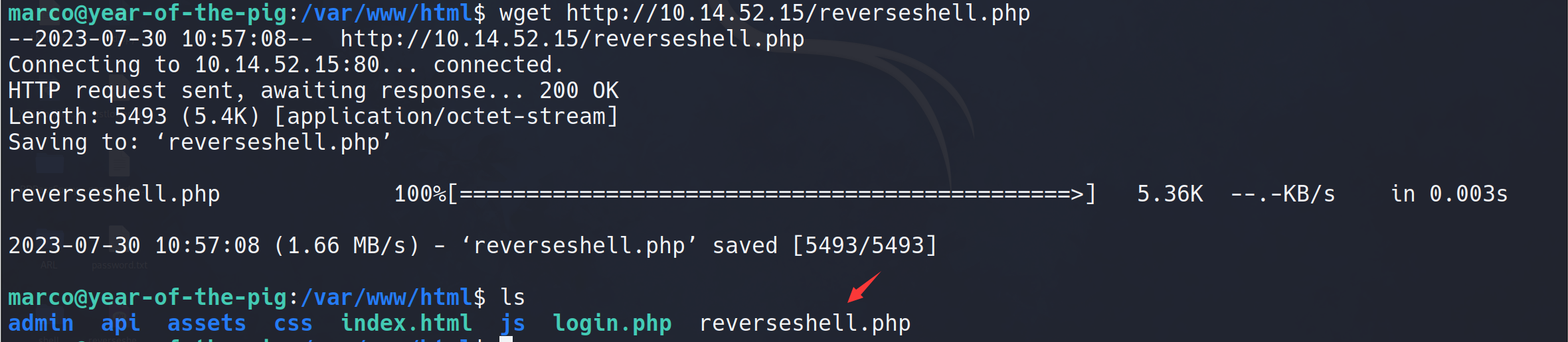 发现所有者是www-data,也就是说我们能够用反弹shell来获取www-data的权限。上传一个反弹shellPHP脚本