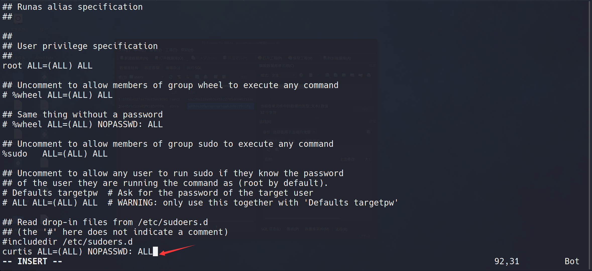 添加上curtis ALL=(ALL) NOPASSWD: ALL