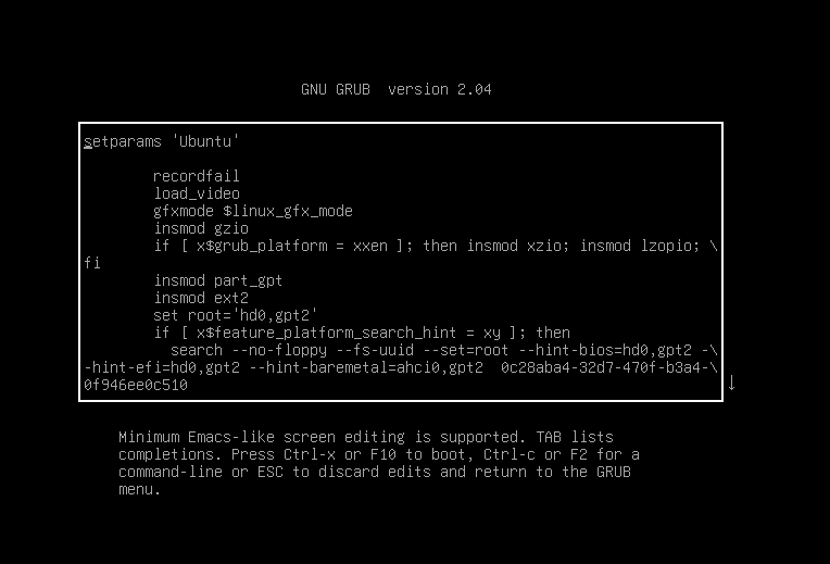 开启靶机后来到这个界面,如果没有弹出这个界面。那就重启靶机,在vmware标志出来的瞬间按住Shift键,来到这个界面之后松开。按下“E”,来到以下界面