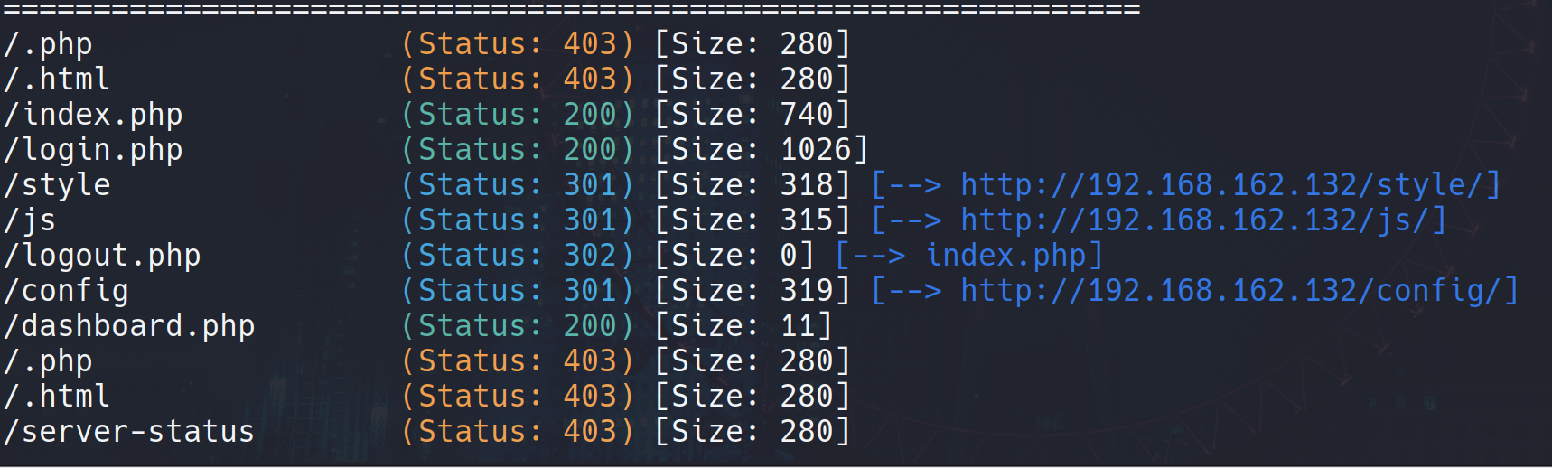 gobuster dir -u http://192.168.162.132/ -w /usr/share/wordlists/dirbuster/directory-list-2.3-medium.txt -x rar,zip,sql,txt,jsp,php,html,bak |