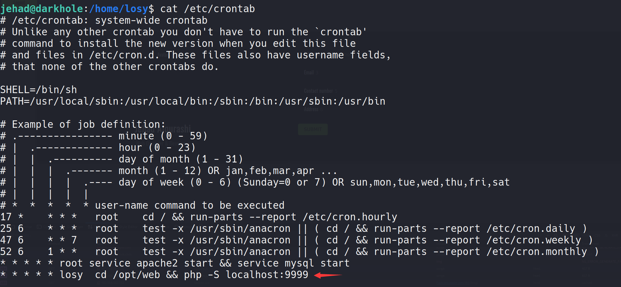 losy有一个计划任务,应该是在/opt/web目录开启本地的9999端口