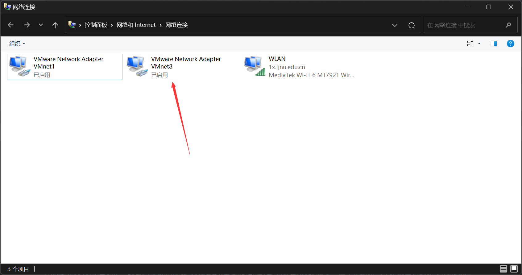可以看到有几张网卡,右键VMnet8这张网卡,右键->属性