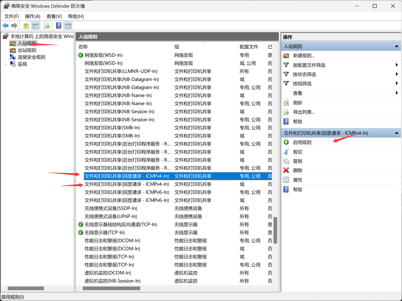 WIN10,WIN11默认是不开启PING回应的,我们需要验证我们的NAT配置是否正确,于是打开PING回应